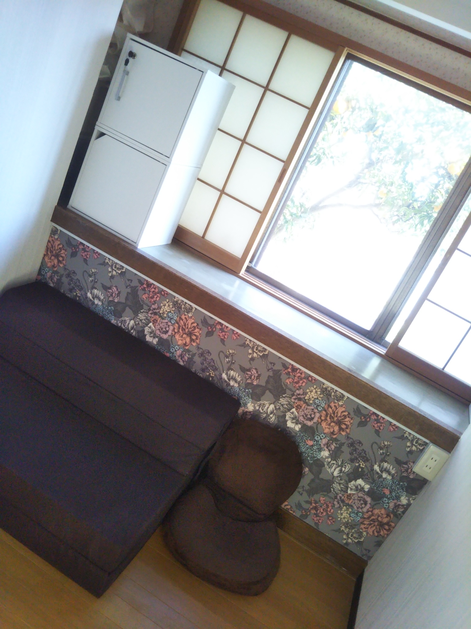 一昨日前の住人さんが退去したばかりのB102のお部屋。窓からデコぽんの木が眺め放題(笑)で日当たりもよし。