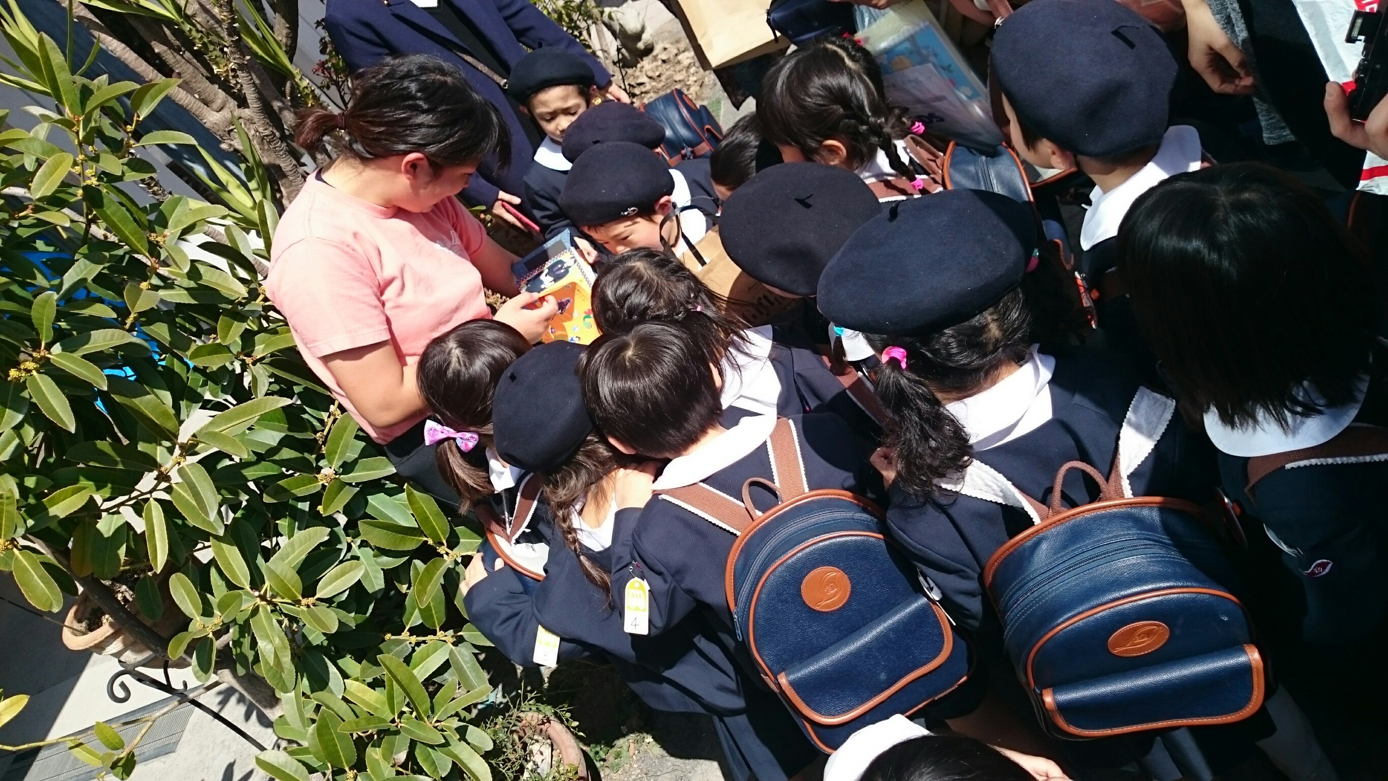 『せんせー、1年間ありがとうございました~♪』とわらわら。幼稚園児はみんな先生が大好き!(*^_^*)