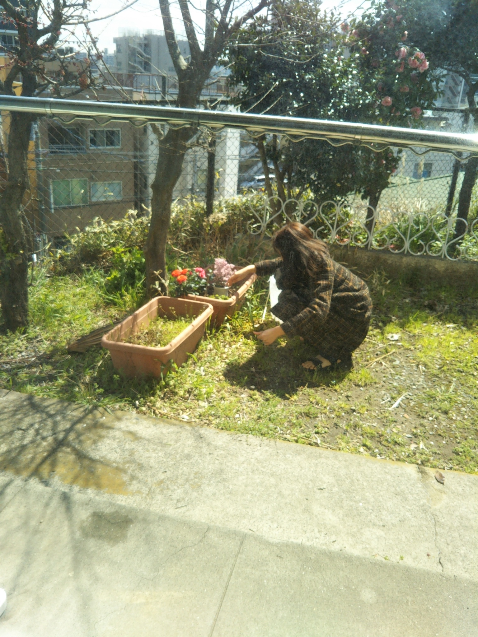 早々に商店街でお花を買ってきて植えていました~~~!行動が早すぎて笑ってしまいました(笑)。商店街には何件かお花屋さんがあるから選ぶのも楽しいよねぇ。