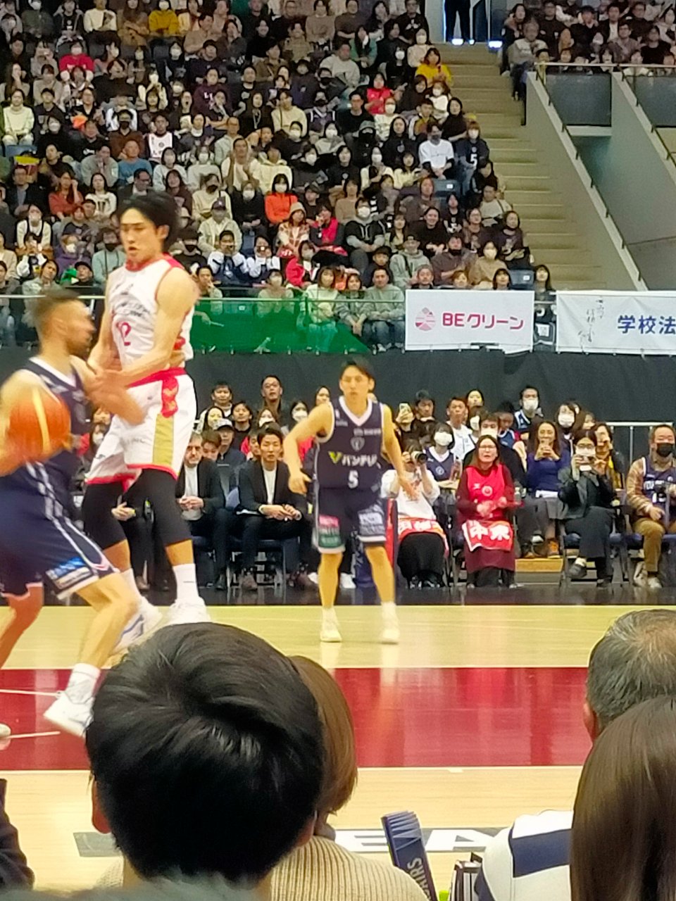 肝心な試合内容ですが、なんとずっとビーコルがリードしていたのに残り数秒で相手(名古屋のチーム)に同点に追いつかれてまさかの延長戦に突入!めちゃめちゃハラハラドキドキ興奮のおもしろい試合展開になりました。最終的には【83-80】で勝ちました!!