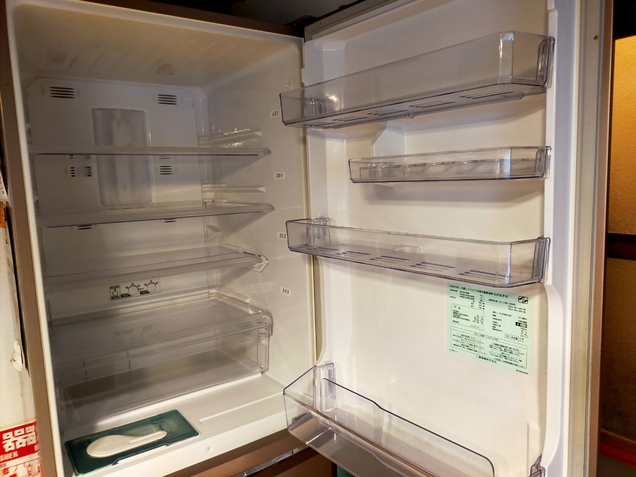 冷蔵庫の中ってこうなってるんだねーって。内部、10年の年代物のわりにとてもきれいでした✨って、内部は汚れないか💦