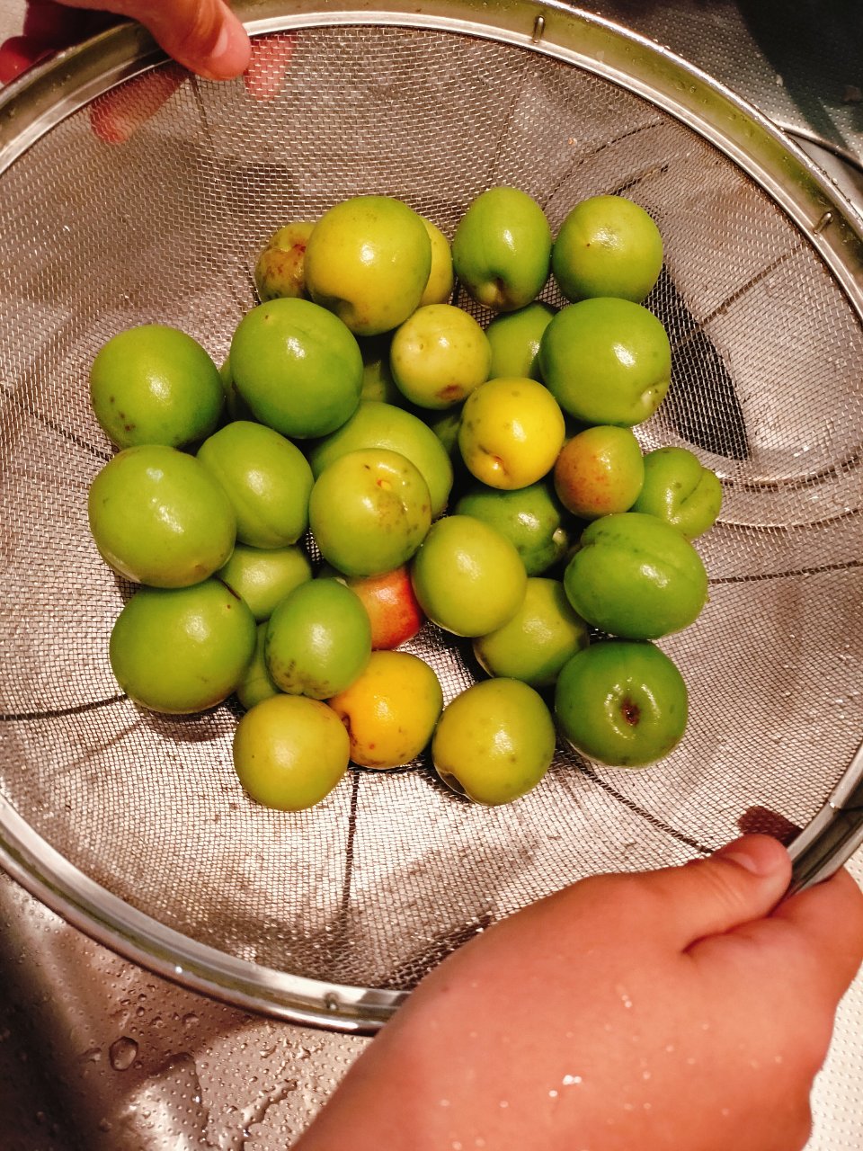ヘタを取って梅を洗い、
