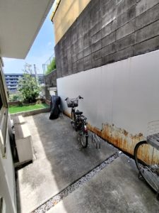 洗濯機置き場は2階の屋外にまとめて設置されていました。屋根があるし、外だから音もうるさくないしいいですね。