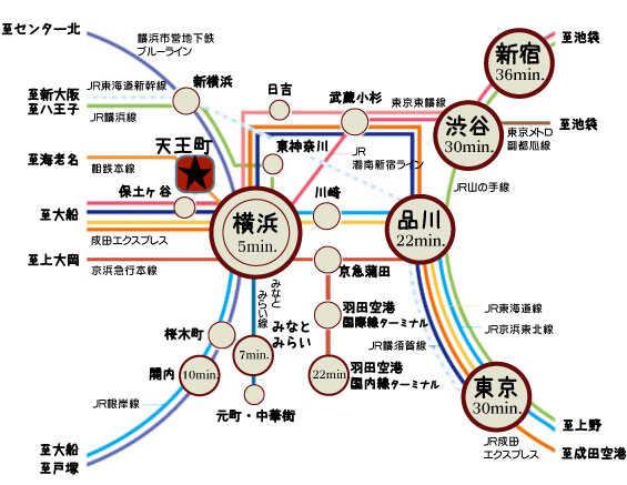 ターミナル駅横浜駅までは電車で5分の距離です。東京都内へのアクセスもよいので都内に通勤されている方もいらっしゃいます。